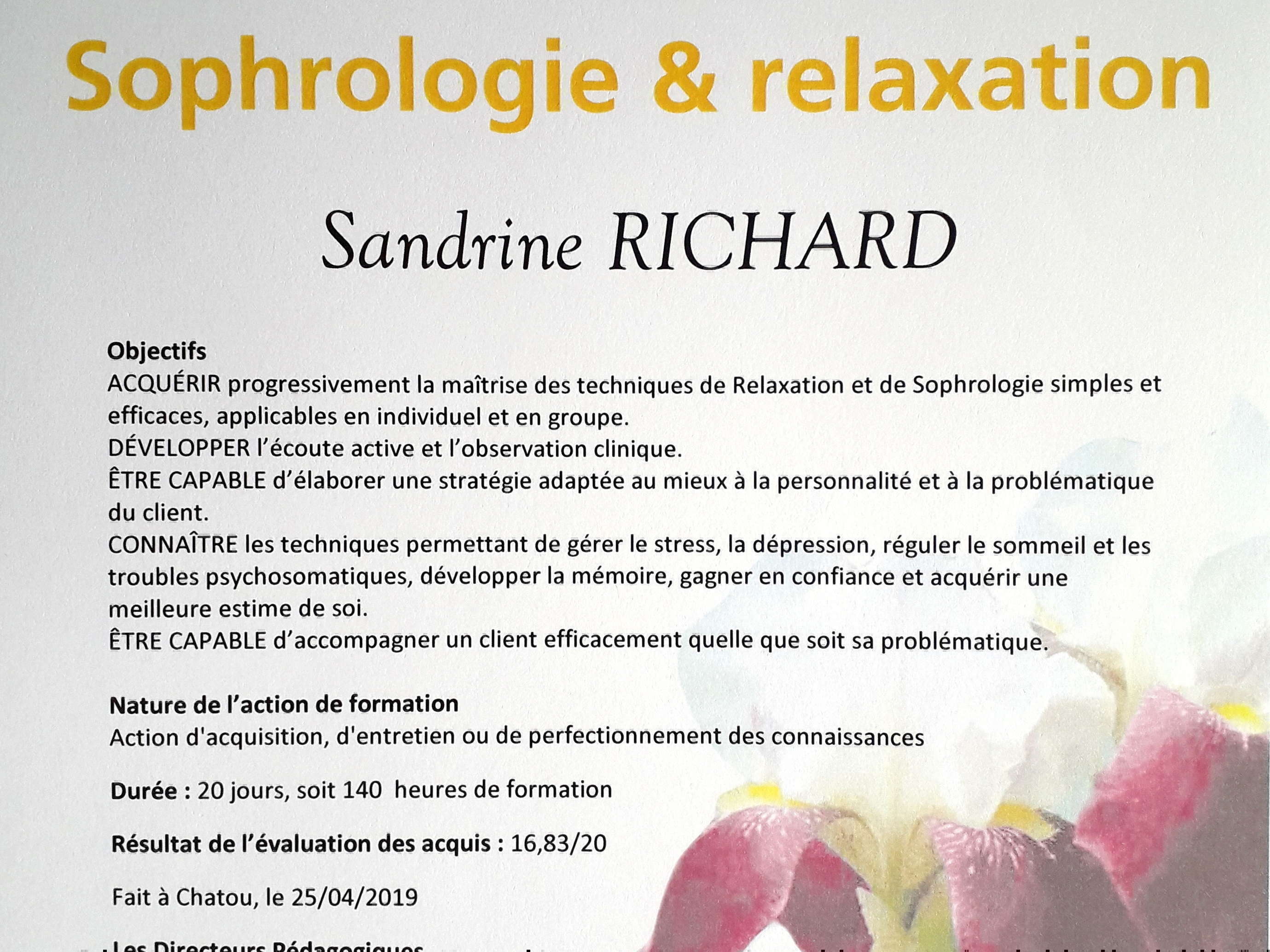 Je m'appelle Sandrine Léger Richard, j'ai 54 ans et je réside à Bailleval dans l'Oise (60). Je suis à l'écoute de mes désirs et de mes besoins, et je me sens de plus en plus en harmonie avec mon parcours de vie. J'accueille chaque événement qui se présente avec gratitude, car tout prend un sens lorsque l'on en prend conscience.